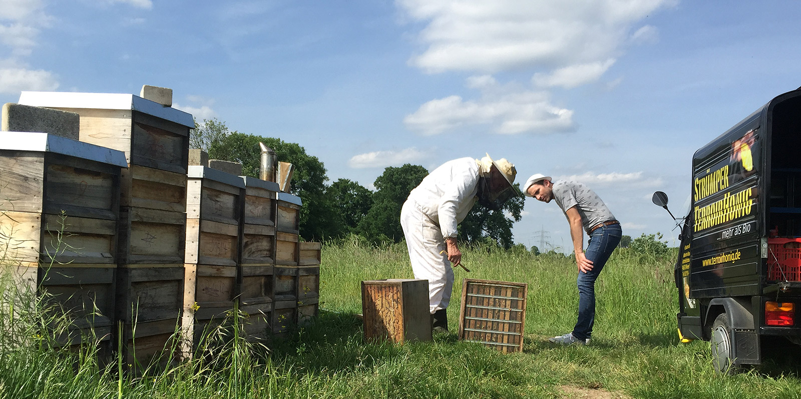 Back to the roots ist ja nicht die schlechteste Parole. Gerade, wenn es – wie in unserem Zusammenhang – um die Rückbesinnung auf traditionelle Werte geht. Nicht auf irgendwelche abstrakten sondern auf die Haltung von Bienen und die Gewinnung von Honig. Deshalb Strümp und nicht Meerbusch.