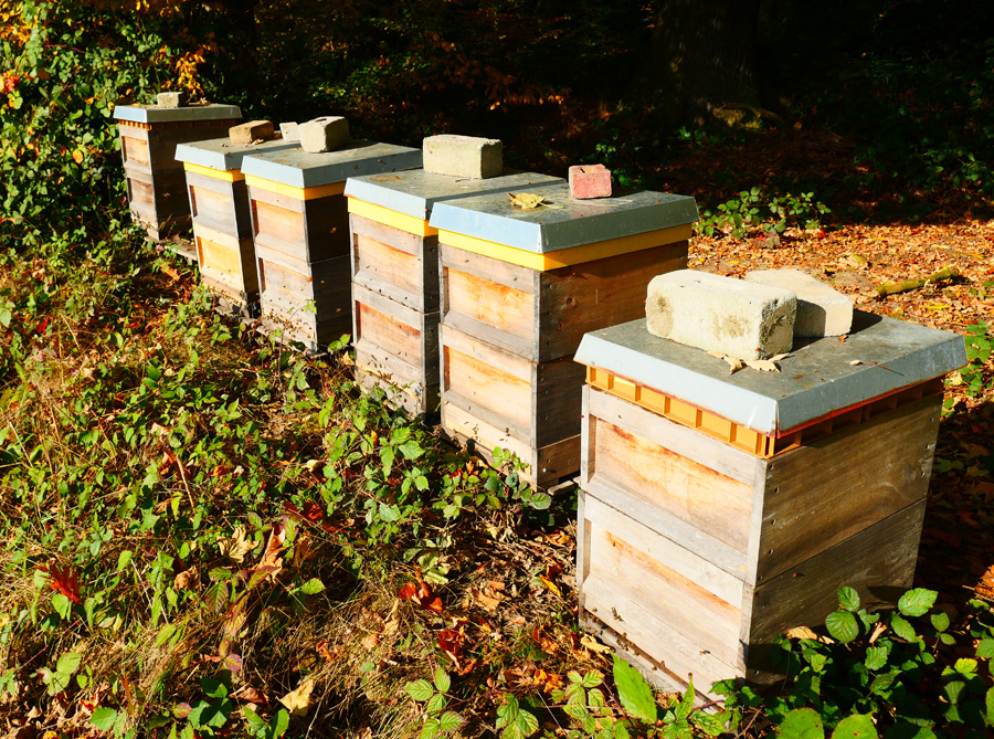 Wie im Hochsommer flogen die Bienen am 31. Oktober. Als ich genauer auf die Fluglöcher schaute sah ich, dass viele mit großen Pollenhöschen von ihrem Ausflug zurückkamen. Ich vermutete, dass sie den Senfacker bei Ossum besucht hatten. Doch nicht nur die Bienen sondern auch Hunderte von Marienkäfer waren unterwegs. Mit einem tiefen Brummen flogen sie mir an den Kopf, wobei es jedes Mal Plupp machte. Klar, dass ich zusammen zuckte, und auf den Stich einer Biene wartete. Doch der kam nicht.