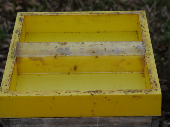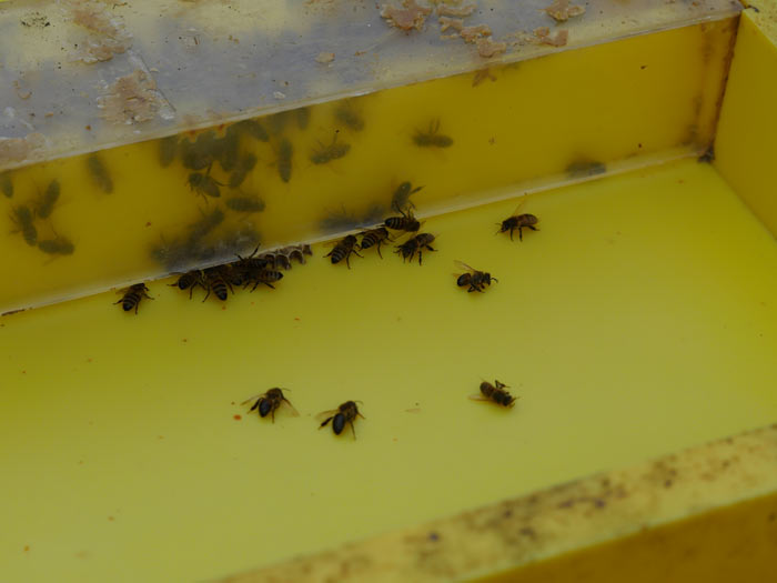 In den letzten wärmeren Tagen erprobte ich die Fütterung mit flüssigem Sirup. Innerhalb von zwei Tagen leerten die Völker zwischen 3 und 4 Liter.