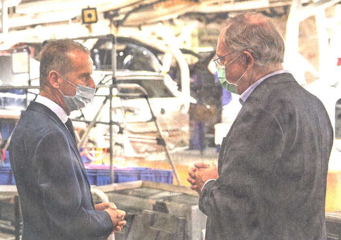 Was machen die denn hier? Schauen Sie mal auf die gefalteten Hände! Der oberste VW Chef und der niedersächsische Ministerpräsident beten. Nicht im stillen Kämmerlein, sondern am Wolfsburger Montageband unter den Augen von Pressefotografen.