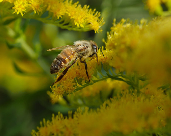 Die ersten beiden Zeilen von Friedrich Hebbels “Herbstbild” trifft meine Stimmung beim Betrachten der Bienen im Goldregen am Nachmittag genau: