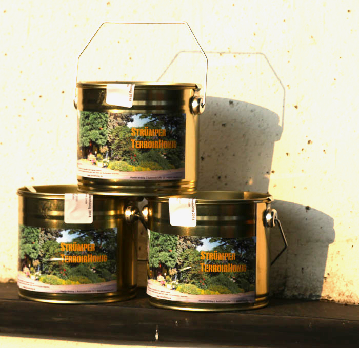 Heute kam endlich die Sendung mit den Honigeimern aus Metall. Natürlich sind sie lebensmittelecht. Schnell ausgepackt, habe ich die ersten gleich mit sommerlichem Blütenhonig aus dem Schürkesfeld gefüllt. Gefallen hat mir übrigens der perfekte Sitz der Deckel.