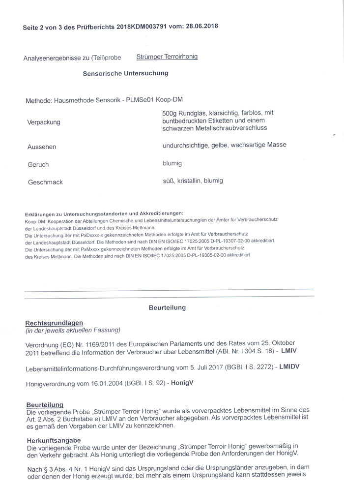 Ziel der Lebensmittelkontrolle war, wie man mir erklärte, die Prüfung, ob mein Honig verkehrsfähig sei. Daran kann jetzt kein vernünftiger Zweifel mehr bestehen.