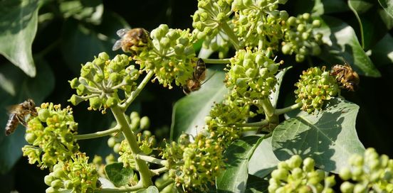 Blog 15.9.16 Späte Nahrung Der Efeu ist wohl einer der letzten Trachtquellen für die Bienen. Kein Wunder, dass es über meinem Carport summt, wie sonst nur im Hochsommer vor den Einflugöffnungen der Beuten.
